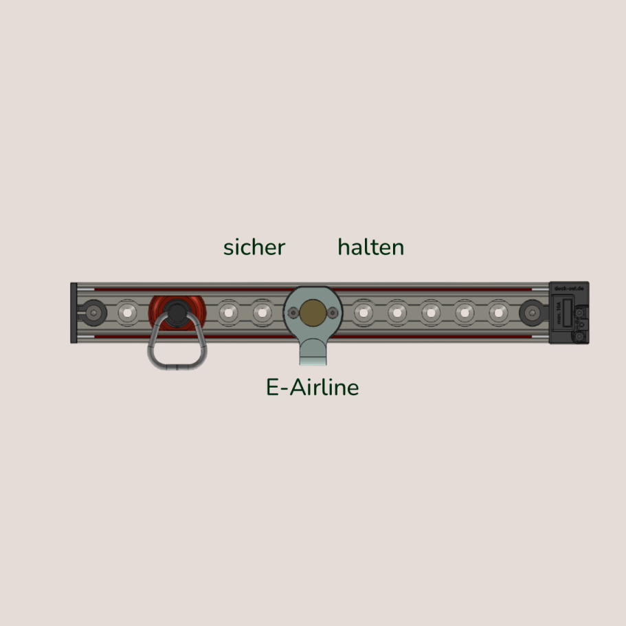 Mit der E‑Airline‑Schiene sicherst du E‑Bikes und Fahrräder zuverlässig – und hast gleichzeitig 12‑V‑Strom direkt an Bord, um Akkus zu laden oder Beleuchtung zu betreiben. Ob im Transporter, im Servicefahrzeug oder an einem modularen Radträger: Du sparst dir zusätzliche Steckdosen und Verkabelung und hast Strom immer genau dort verfügbar, wo deine Bikes stehen.